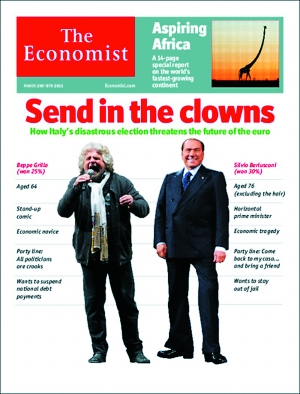 身处逆境时,幽默感能引起别人的注意,但不一定总是管用。面对上个世纪30年代以来这个国家最严重的衰退,加之欧洲单一货币可能解体,意大利人决定选择逃避现实。在上周的选举中,有1/4选民甚至不愿去参加投票,创下了战后的最低纪录。在参加投票的选民中,几乎30%的人选择了西尔维奥·贝卢斯科尼,作为一个小丑型的总理,贝卢斯科尼的毁灭性政策是意大利经济困局的主要原因;同时,另有25%的选民把票投给了“五星运动”党,该党领导人贝佩·格里洛是一位天才的喜剧演员。相比之下,在过去的15个月中领导意大利并使大部分遭受重创的国家信誉得以恢复的改革派技术官僚马里奥·蒙蒂的得票率只有可怜的10%。