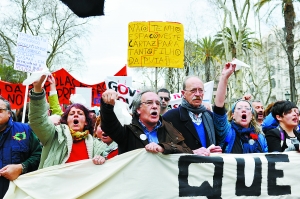 葡萄牙数十万民众当日在葡全国36个城市举行游行示威活动,抗议“三驾马车”以及葡政府实行的经济紧缩政策。这是今年以来葡发生的最大规模的抗议活动。此次示威活动恰逢欧盟“三驾马车”代表对谅解备忘录进行第七次审议之时。