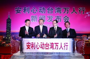 近日,安利 “心动台湾万人行”新闻发布会在上海举行。会议现场,安利(中国)相关负责人宣布,将从3月12日-4月1日期间,分5个批次组织1.2万名安利营销人员,先后从内地19个城市出发,直飞台湾参加2013年安利(中国)营销菁英进修研讨会。安利(中国)总裁黄德荫、安利大中华区副总裁刘明雄、台湾海峡两岸观光旅游协会上海办事处主任李嘉斌、中国旅行社总社副总裁张士刚等出席了此次会议。