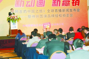 张屹介绍,《阿吉的中国之旅》是以中国地名文化为题材的动画片,目前已经与包括美国ICN电视台、中央电视台在内的近300家电视台签订了播映合同,今年将率先在美国播放,这是目前国内首个将首播放在国外的动画片,同时3000集的剧集也是国产动画片里剧集最长的。此次拍卖的买家除享受一般的动漫形象使用权外,还能享有13集或26集,每集5秒的贴片广告,所以在后期动画片播放的时候也为授权企业提供了一些宣传机会。也正是基于此,此次拍卖才吸引了众多买家前来。