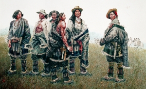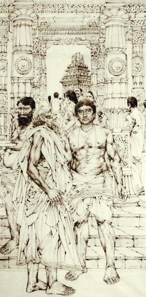我所想的是如何表达更深切的体会。想画出人物形象眼神中、肢体中、生态中的故事,他们人生的活法和念头,显然背离了传统的调式。但我不敢以飘逸的笔意去玩味草原,冰山与酥油混合的男人、女人,玩味苦行僧;玩味乌贾因圣城狂热自虐的信徒;玩味大凉山的彝人。也玩不了,玩不出这种不容虚饰的真实,而需要对应的方法重塑。