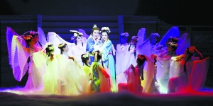 作为“2013黄梅戏演出艺术周”活动之一,全新大型神话黄梅戏舞台剧《牛郎织女》近日登台国家大剧院。然而令观众惊喜的是,每个座位上都放了一副3D眼镜。该版《牛郎织女》正是将传统戏曲融合现代科技,为观众营造出一个全新的戏曲体验。前来观演的刘女士说:“有3D电影,没想到还有3D黄梅戏。”