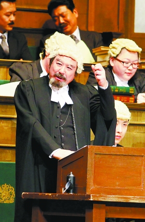 就在观众们开始与戏剧赛跑猜测到底谁才是杀人犯时,这间摆满了古老英式木家具的房间突然变成了一个庄严的英式法庭。不需要转台,甚至不需要黑场,就在观众眼皮底下,几件家具的重组轻松成就了起居室与法庭的完美转换。就在观众目瞪口呆之时,从剧场的各个通道间涌出了陪审团成员、控辩双方律师、法庭书记员、狱警等浩浩荡荡几十人,他们边从观众席间穿过边讨论着案情。此刻,置身其中的观众也不由自主地成为了戏剧的一部分。