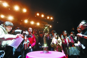 昨日,第三届北京电影节组委会正式对外发布电影节海报以及主竞赛单元“天坛奖”奖杯。作为电影节核心活动之一的电影展映单元,将于4月15日-23日在首都电影院大悦城店等全市26家商业影院进行联合展映。“天坛奖”奖杯昨日是首次亮相,在设计上将中国传统舞蹈水袖舞与天坛剪影相结合,甩出的水袖在空中轻扬婉约地呈现出天坛的剪影轮廓。对于电影展映环节,北京市广电局副巡视员、北京国际电影节组委会副秘书长赵志勇介绍,此次展映延续了去年低票价策略,最低票价仅为10元,最高不超过60元。组委会挑选了260部国内外优秀影片参加展映,其中有1/4在去年和今年国际电影节上获得过奖项,最终电影展映排片表将于4月初公布。北京商报记者 蒋梦惟 卢扬/文 暴帆/摄