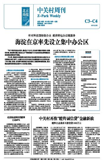 海淀在京率先设立集中办公区