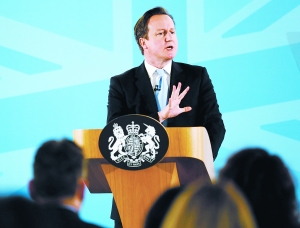25日,英国伊普斯威奇,英国首相卡梅伦在萨福克大学发表有关移民问题的演讲。
