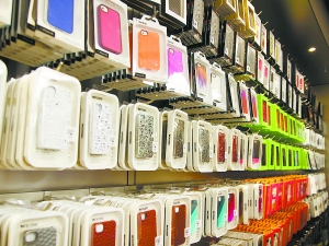 北京商报记者在走访北京地区的传统手机销售渠道时发现,迪信通、乐语通讯、中复电讯大小门店无一例外地都在销售移动终端的配件产品,各个展示区内保护类、充电类、存储类、蓝牙类、外接类等配件一应俱全。仅手机保护壳一项就有十多种材质,图案花色更是达数百种。
