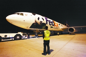 3月25日,两只大熊猫搭乘特别喷饰的联邦快递MD-11货机“联邦熊猫快递号”从成都前往它们在多伦多动物园的新家。作为全球最具规模的速递运输公司之一,联邦快递运用其在物流领域的专业知识和强大的操作能力,已多次运送濒临灭绝的大熊猫。