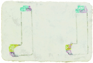 闫博以这种方式,将一系列的抽象形状与抽象色彩组合成为一个共生的画面,这些形状保持了与现实生活的联系,但这些色彩更多地表达了画家内心中的某种意念。如此,闫博将一种日常生活的主题以一种抽象性的构图方式而非再现性的说明方式表现出来,从而再次验证了康定斯基所说的抽象与具象的内在关系,在画布上建立起艺术与生活、抽象与具象的虚拟性关联。在图像与材料之间,闫博将材料的物质性不动声色地呈现出来,使我们逐渐地从以往对于图像意义的解读惯性中解放出来,进入视觉的感知通道,并在其中品味到材料所带来的特殊之美,一如古董收藏者对于古玩长期与人相处后所获得的“包浆”。
