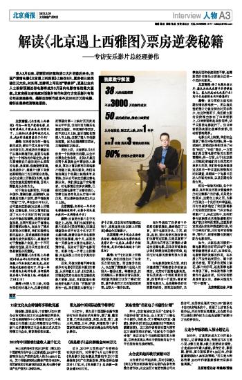 进入3月以来,尽管面对好莱坞进口大片的前后夹击,但国产爱情电影《北京遇上西雅图》上映仅6天,票房便已经突破亿元大关。时光网、豆瓣网上罕见的“零差评”,更是让业内人士纷纷预测这部电影将成为3月国内电影市场的最大赢家。北京商报记者独家对话影片制作和发行方安乐影片有限公司总经理姜伟,揭秘这部制作成本不足3000万元的电影,缘何在最差档期领跑票房。