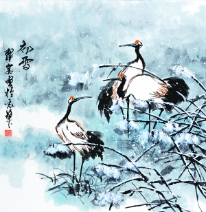 花鸟画讲究气韵生动,写意花鸟画更重气韵。气韵并不只是来自景物的形质和精神,更重要的是来自于画家本身的心态和气质。石涛有语:“夫画者,从于心者也。”杨翠金的写意花鸟画笔墨讲求气韵,布局追求变化,既有清逸淡雅的情趣,又有其独有的精神意气,看似信手挥就,但在构图立意上都有独到之处,耐人寻味。从她构图立意的深思熟虑、运笔运墨的写意洒脱、创作的沉稳和理性的意味,足见画家对形、光、色、线多元论的运用和深厚的传统功力。