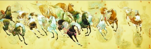近日,“扬鞭·奋蹄——赵文元鞍马画新作展”在中国美术馆隆重开幕。此次展览共展出著名画家赵文元的46幅作品,皆为艺术家近年来创作的精品力作。其中,长达22米的巨幅作品《历代宝马图》首次在北京亮相,作品共选取了周穆王八王之骏、秦始皇七名马、汉文帝九逸、唐太宗十骥……一直到清乾隆十骏,共绘宝马56匹。此画经过十多年的准备、10个月的制作才顺利完成,整幅画作构图严谨、用色讲究,“赵家马”一时间风靡京城。