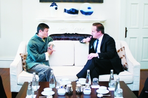 离京抵沪的英国首相卡梅伦继续扮演着“首席推销员”的角色。昨日,卡梅伦先后会见了多位中国产业大佬,为英国公司和产品进入中国市场不遗余力地推广。图为卡梅伦会见阿里巴巴集团董事局主席马云。(详细报道见第2版)