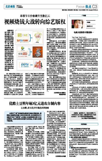 优酷土豆明年砸3亿元进攻自制内容