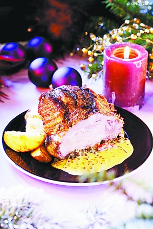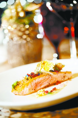 在视野绝佳的北京亮餐厅,德国籍主厨雷斌精心设计的圣诞平安夜大餐,充满了东西方文化的融合之妙。作为前奏的开胃菜选用新鲜的塔斯马尼亚生蚝、鸡尾黑虎虾、阿拉斯加蟹饼,为圣诞大餐展开序曲,汤品选择了拥有东方传统的松茸天麻乳鸽汤,暖胃的美味下肚将气氛逐渐烘托,主菜是慢烤火鸡胸、油浸火鸡腿,配上红莓甜酸酱与蜂蜜水晶栗子和焖海棠果的点缀惊喜不已,再配上德国黄油面饺,多样口味进行创意混搭,为味蕾带来一丝丝融合的气息。圣诞大餐的主角火鸡,用慢火烤制,外皮金黄酥脆,肉汁丰腴饱满的火鸡,配上主厨特调的红莓甜酸酱、焖海棠果和蜂蜜水晶栗子、德国黄油饺子,使其口感更加细腻,耐人回味。