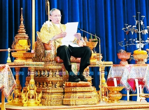 当地时间5日,泰国华欣,泰国国王普密蓬发表生日演讲,呼吁人民尽责维护国家安全和稳定,为了国家而支持彼此,没有直接提及近来的政治动荡。