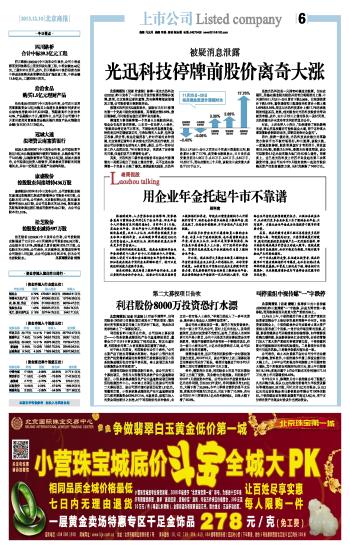 根据光迅科技的K线图显示,该股在12月2日停牌的前一个交易日股价突然暴涨,其涨幅达到9.56%,接近涨停板,同时股价还创出近两年来的新高。