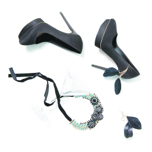 出众的造型往往需要到位的配饰装点。Stradivarius 12月全新系列以全黑色调为主题,设计上简约时髦,配饰上也做足功力,为这一年的摩登形象做了完美的收尾。这次推出的配饰有不同的系列。亮金系列是其中之一。黑色为主的造型,配饰上就要很讲究光泽与颜色了。这个秋冬热门的金色系无疑是最佳搭档,一系列华丽却不媚俗的金色款式也出现在Stradivarius的这组全新系列中。黑色羽毛耳饰看上去神秘妖娆,有了金色链条作为辅助,更增添了华丽的氛围。