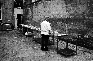 与为了抓拍而侵犯到拍摄对象的顾虑相比,错过某个瞬间的遗憾更让蒋仲夏无法忘却。路边两只并排趴着的大公鸡是一个看似荒诞的画面,随手拍下这个场面之后回头想重新构图再拍一张的时候,蒋仲夏转眼之间看到的却是两只鸡在自己的眼前被宰杀的场景,这戏剧性的一幕着实给他带来了不小的冲击。
