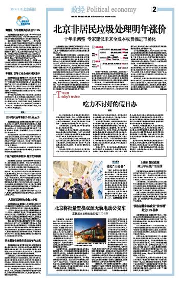 北京非居民垃圾处理明年涨价