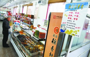 稻香村第十一营业部的工作人员告诉记者,去银行兑换分币往往兑换不到,他们找零的分币大多数是客户给提供的。记者注意到,在购买熟食区的玻璃门上,贴着一张温馨提示:“如果顾客有1分、2分、5分、1角、5角,欢迎去办公室兑换。”