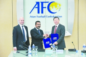 青岛啤酒股份有限公司副总裁兼营销总裁王瑞永及亚足联秘书长迪托·亚历克斯、WSG集团足球事务副总裁汤世文参加了签约仪式。在签约仪式上,王瑞永表示:“希望冠军品质与冠军赛事的携手,能为亚洲球迷奉上更精彩的啤酒与足球的联袂盛宴。”