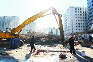 12月14日,北京商报记者在住总原址看到,昔日该地区最大的家居商城已经被多台液压机夷为废墟,巨大的机器轰鸣声和拆解后散放的尘土弥漫在四周。