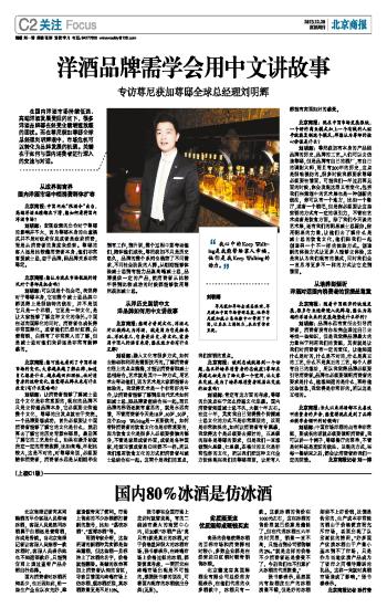 北京商报:您刚才讲到文化,洋酒之所以被称之为洋酒,就是因为它是舶来品、洋玩意儿,它要讲历史、讲文化,需要用中国人的语言来讲,您在这方面有什么见解?