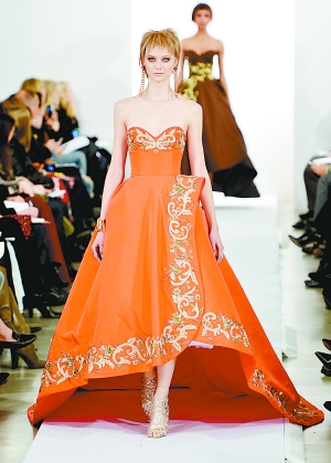 本季的纽约时装周设计师们都为美而拼,不美不活。Carolina Herrera透彻地把猩红色玩到绝美,优雅与甜美统统拿下;Donna Karan炽热的烈火之心把黑色的张力表达在帅气的西装夹克和性感的钉珠高衩蕾丝长裙上;金属感时装加上夸张白发,最特别非Thom Browne莫属。色彩让人惊叹,廓形也难掩张扬的个性。有一个现实就是:看Zac Posen的人惊呼:“美!”而穿它的人苦言:“快不能呼吸!”如果说束胸衣造就了Zac Posen的优雅曲线,那么公爵缎就是它永恒的精神寄托。有意思的是,你会发现这季前胸的“尖角”设计,同模特上挑的眼线一样,性感又时髦。