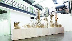 徐震的艺术实践涉及众多媒介,包括绘画、雕塑、机械装置、录像、摄影和行为等,且经常糅杂于一件作品中。最近举办的展览“徐震:没顶公司出品”上,包括逾50件装置,10件录像,40件绘画、拼贴和多件行为作品布满了尤伦斯当代艺术中心大展厅和大堂。展览脉络十分清晰:从徐震上世纪90年代末的早期个人创作,到2009年创立没顶公司之后的集体身份创作,再到2013年没顶公司推出品牌“徐震”并发布一系列重要新作。
