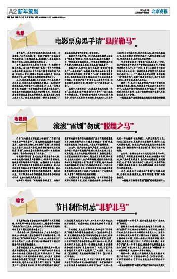 2013年,电视剧行业可以说是毫无惊喜的一年。尽管高产,却因低质量难逃骂声连连、收视惨败的厄运。除了显而易见的原因,整个行业有待规范、屡遭剧本荒,也为“雷剧”频出提供了土壤。此外,剧本创作枪手频现、高新屡遭拖欠、维权难等老话题,依然阻碍着行业的健康发展。