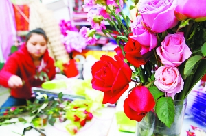 今日是情人节,玫瑰花价格已经提前多日暴涨,最多甚至达到五成。据城南一大型花卉批发市场商户介绍,今年玫瑰等鲜花的价格上涨大多是受到节前鲜花主产地云南雪灾的影响,往年同期的玫瑰批发进价在三四元左右,今年已经达到八九元。情人节当日的售价将超过15元/枝。北京商报记者 张笑嫣/文并摄