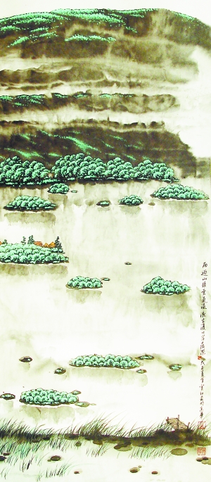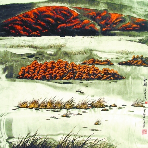 艺术是相通的。设计之余,肖红更喜爱创作山水画。他的山水画如同是一件有思想的设计作品,在静观自然的基础上,以娴熟的笔墨技法,阐释自己对自然生命的一种感悟。肖红的画不是随意画出来的,从色彩和构图看似单纯,但简约而不简单,透露着大气、深邃的意境,充满灵动的思维取向,折射出他对人生的思考。从他的每一幅山水画作中,我们不难看出画家的心灵对生活充满着浓浓的诗情。通过笔墨与景物的结合抒发出对大自然的深情礼赞。这也验证了肖红的理念,“艺术需要文化积累与沉淀”。