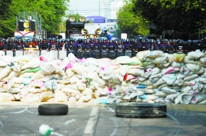 昨日,泰国警方出动2.5万警力,对总理府、民主纪念碑、能源部、内政部、政府综合办公楼等五个地点附近的集会示威者实施驱逐。当天的冲突造成警察和示威者共4人死亡、64人受伤。受政局动荡影响,泰国去年四季度经济增长率同比仅增0.6%。(相关报道见第8版《政治动荡 泰国去年末季经济仅增0.6%》)新华社/图
