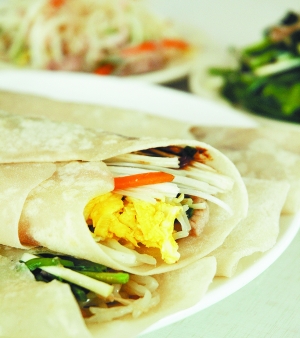 北京商报记者日前发现,包括稻香村等老字号在内的部分卖场,各类春饼已陆续上市。地坛附近一家稻香村门店所售的全聚德320克装速冻荷叶饼8元/套,速冻春饼颜色较荷叶饼发黄,尺寸比荷叶饼大一些,每袋400克,售价7.5元。