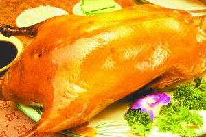 据仿膳饭庄销售人员介绍,清代宫中御厨们为了增加鸭菜的风味,采用炭火烘烤,成菜后鸭子外皮酥香,肥而不腻,广受称赞,即被称为“烤鸭”。烤鸭也是宫廷当中一道进补佳肴。随着社会的发展,烤鸭逐步由宫廷流传到民间。分为了挂炉烤鸭和焖炉烤鸭两大流派。