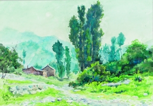 彭庆威画作不外乎心醉神迷的风景和写实的人物,不管湛蓝天空、明媚阳光、五彩山林,还是金澄草场上的牧人、灿烂晚霞中的马群……色彩都是温暖而亲切,浓浓的人情味儿和对万物神性的赞美始终贯穿于其中。在他的笔下,发自内心的简约和无言的美是超越所有语言的力量。这种用细腻而精练的写实手法描绘自然美的方式,有些怀旧又不失亲近,在近代美术史上可以追溯到乡土写实大师安德鲁·怀斯,而更远则让我们想到意大利文艺复兴时期安静淡然的田园风景画。彭庆威的水彩画同样精彩,浓淡相宜、干湿互衬,用人文情怀使画作摆脱了水彩画种作为“入门学习”和“写生起草”手段的局限,更具有“小品诗”和“轻音乐剧”的特性,大大增强了水彩画的表现力和功能性。