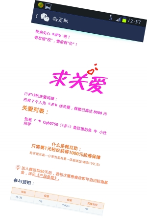 继春节期间微信“抢红包”火了一把之后,险企也开始盯上微信强大的互动平台市场。近日泰康人寿就联手微信平台推出“微互助”短期防癌健康险,主打“1元钱求关爱”的概念引起了微信用户的高度关注和转发。