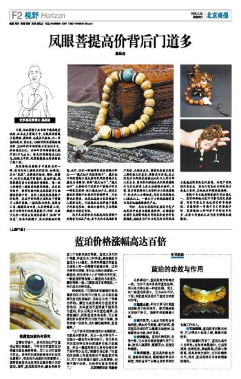 目前,文玩菩提子在市场中越来越受欢迎,而在众多菩提子中,尤数凤眼菩提子最特殊、最神秘,也最具代表性。以一串直径8毫米、重40克、108粒的凤眼菩提念珠为例,2009年的市场价格只有2000多元,折合每克50元;而今年的市场价格已飙升到5万元左右,每克的价格高达1250元。短短五年间,凤眼菩提每克的价格涨了数十倍。