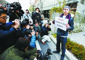 26日,在日本东京的比特币交易所Mt.Gox网站的办公室外,一名比特币投资者举着写有“我们的钱在哪儿?”的牌子抗议该公司突然关闭交易。据悉,全球比特币交易重要平台Mt.Gox在25日宣布暂时关闭。Mt.Gox宣布停止交易一事引起市场震荡。数据显示,25日早些时候的CoinDesk比特币价格指数大跌15%,至464.66美元。相比之下,这一指数去年12月曾达到1151美元高位。关于投资比特币的安全性,一直以来存在很大争议。此次,Mt.Gox停止交易事件无疑为比特币的前景蒙上了一层阴影。据新华社