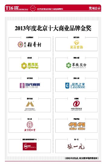 T16: 2013北京十大商业品牌特刊·奖项公示