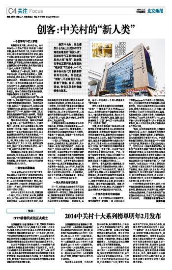 2014中关村十大系列榜单明年2月发布