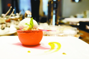 另一道美食煎鹅肝也让食客流连忘返。用略带苦味的巧克力搭配煎鹅肝,中和了鹅肝的油腻口感,樱桃和蜂蜜也能够为鹅肝解腻,增加更多层次的酸度。