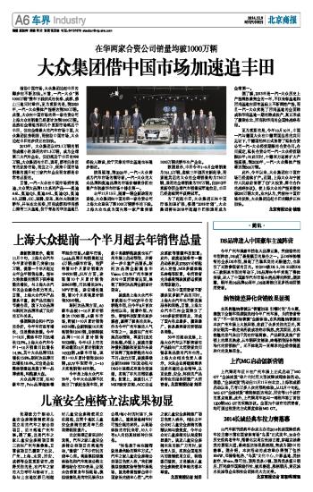 大众集团借中国市场加速追丰田