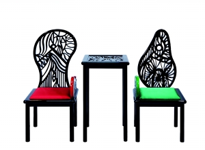 在本届文博会台湾文创精品馆的城市游戏台展区,香华天展区的柜台前吸引了许多消费者。由台湾老师傅纯手工制作的木质家具,家具的表面完全是一幅版画,而且设计者运用巧妙的设计将拼接部分完成,在制作过程中没有在家具中安装一颗螺丝钉。此外,为了打造完全无毒的环保家具,该家具的涂漆全部采用植物生漆。