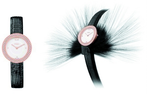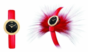 饰以Fendi皮草工厂生产的狐狸皮翎饰。正式场合可取下翎饰,在盛宴上亦可加上。卸下翎饰,典雅而精美;佩戴翎饰,璀璨而活泼。有精钢、精钢配黄金或赤金色表圈,以及全黄金或玫瑰金色款式,其中包括钻石款和五钻石款。