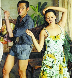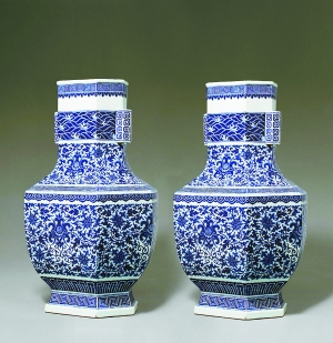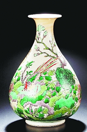 清康熙米黄釉五彩玉堂富贵玉壶春