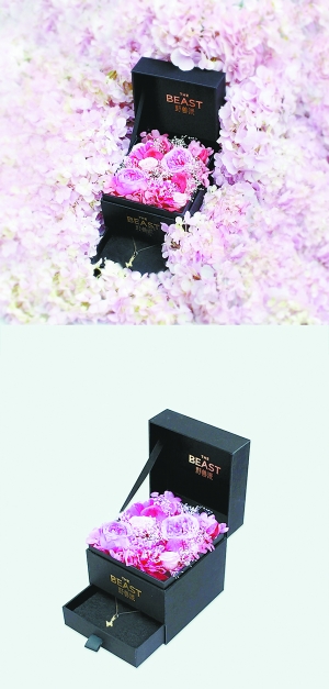 著名设计师Les Suen手绘了名为“荒野之花”的主题画面:优雅黑豹出没在荒漠植物中,背景色是温柔含蓄的ash rose;盒中永生花色泽,为日本名厂专为野兽派定制。一盒用尽诚意与小心思的花,适合献给生命中值得珍视之人。