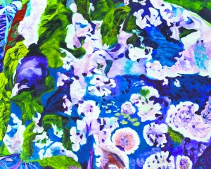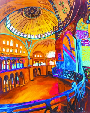 有趣的是,江洲的画大部分都是风景题材,内容基本上都来自他在世界各地旅行的照片,但这些风景不再具备完整的可识别度,而是充分经历了他对照片(图像)世界的发现和创造,并以主观化的细节实践凝聚为绚丽的物质呈现。之所以绚丽,是因为照片(图像)的世界得到了激活,绘画不再是一种高度专业的门槛,而被释然了的人生演化为一种普通的劳动,使其在形式中饱含对生命的赞颂。
