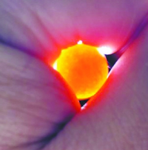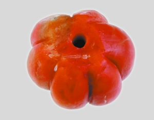可见保山南红内部的墨点状结构,墨点颗粒极细、十分均匀而且整体通红。